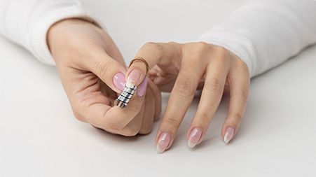 Apply a thin layer of gel extend to the natural nail, and cure using a gelmoment led lamp. Avoid thick layers to ensure the product cures properly.